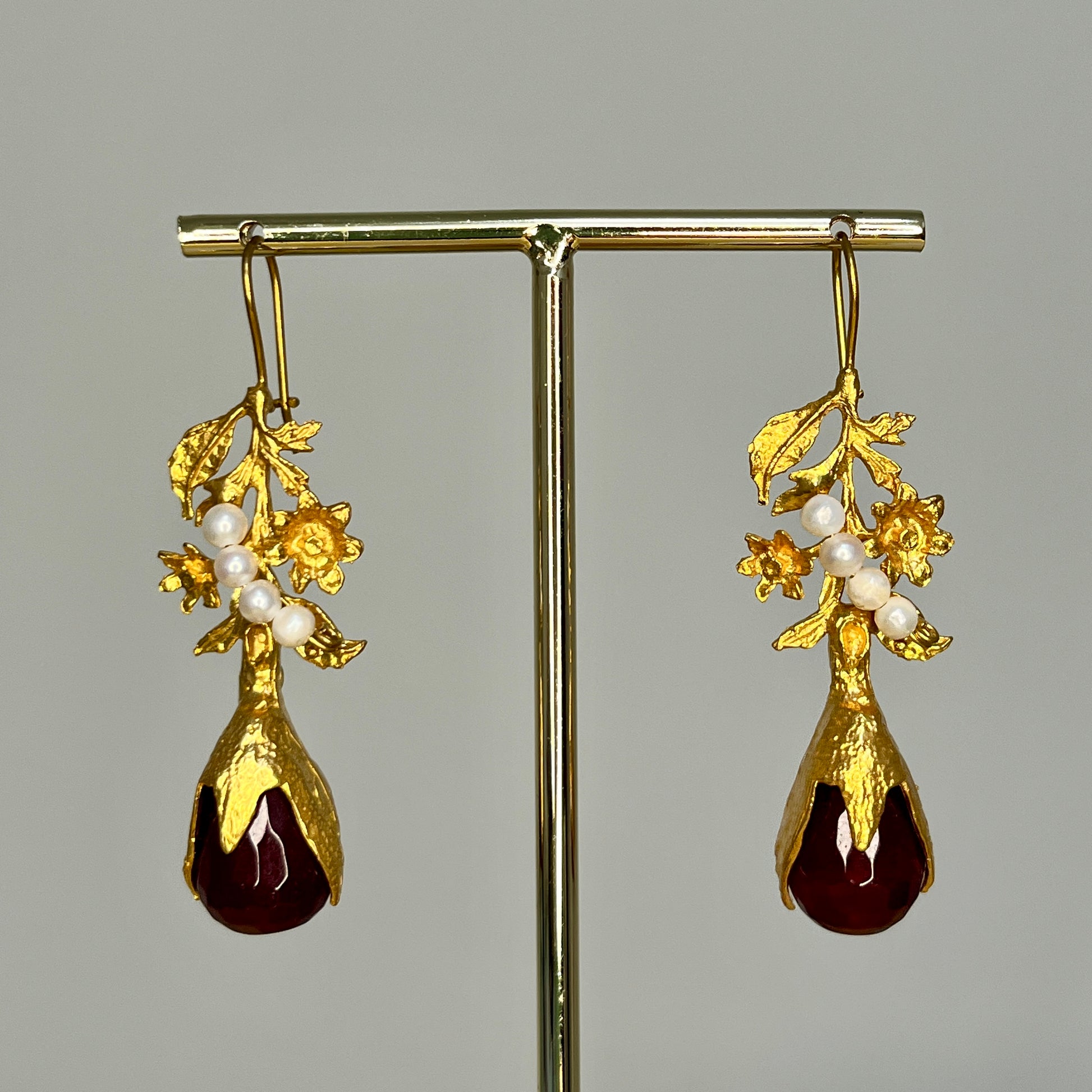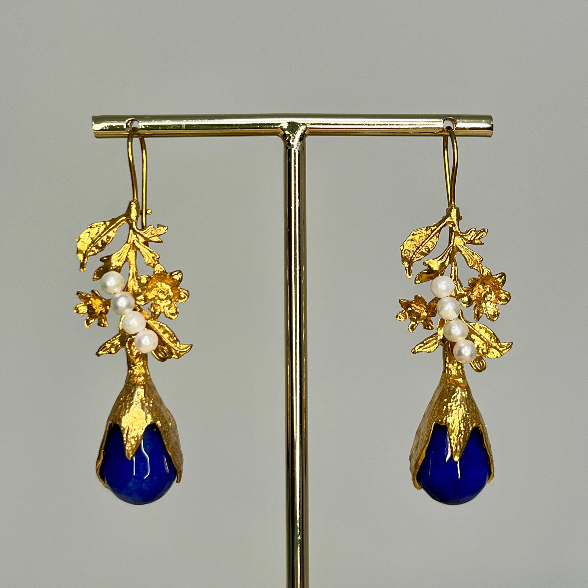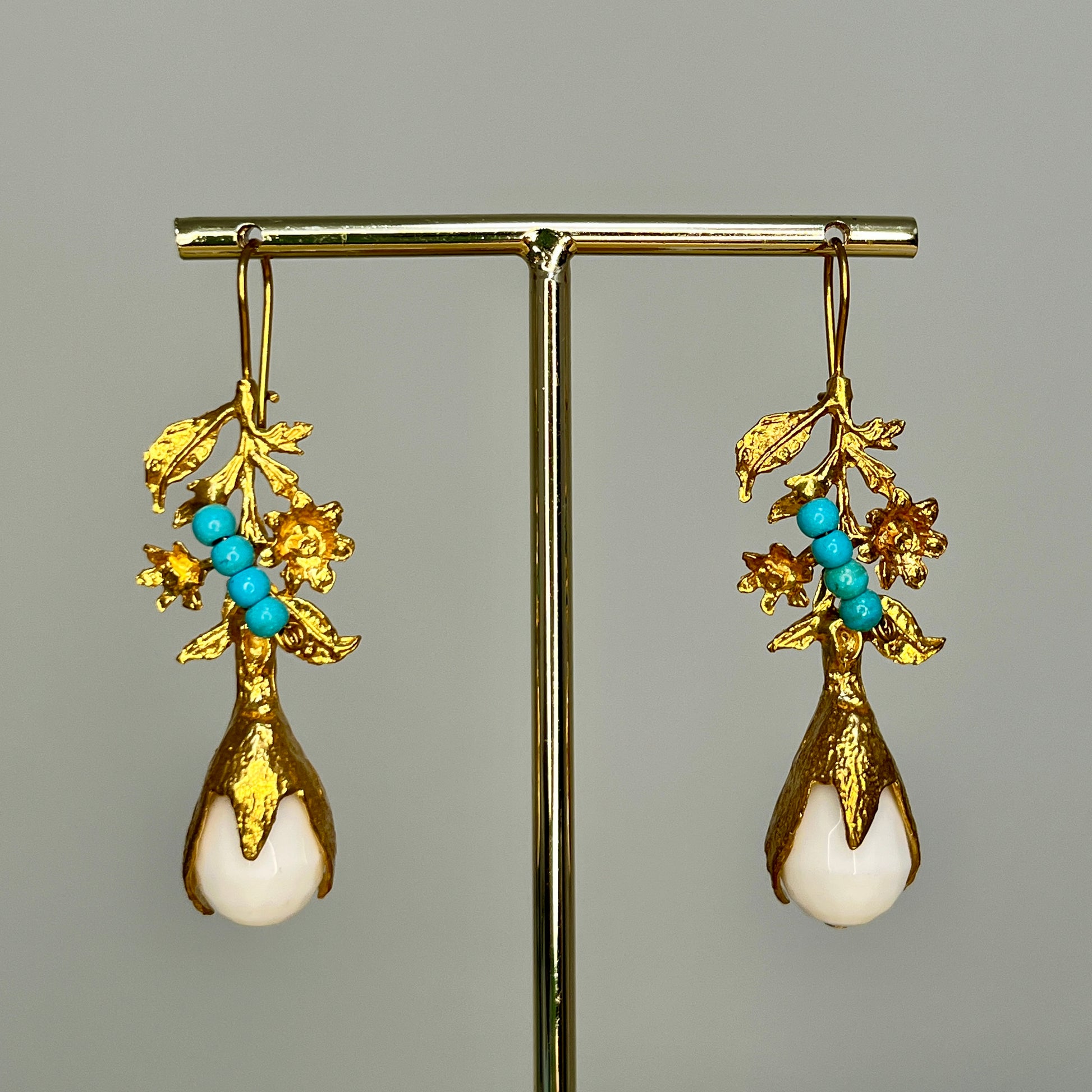 Pendientes de metal chapado en oro con piedras naturales.